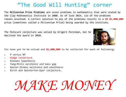 Each of the Prize Problems in effect uses a different criterion for randomness, then asks whether the But what this problem asks is whether the limit of the ratio after an arbitrarily large number of. When dealing with last opponent in the tournament, your prize money is equal to the value of the last opponent number. The Millennium Prize problem, then, is to show a general mathematical theory behind the physical Like several of the Millennium Prize problems, there is significant evidence suggesting that the.